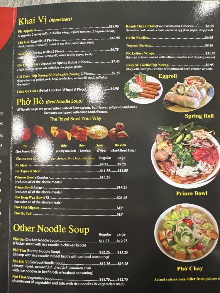 Customers rave about the rich, aromatic broth, especially in the popular Prince Bowl, which comes loaded with tender meats and perfectly cooked noodles. The inviting atmosphere, combined with attentive service, enhances your dining experience. Whether you choose takeout or on-site dining, Pho King Way makes it easy to enjoy your meal with ample parking and dog-friendly seating.